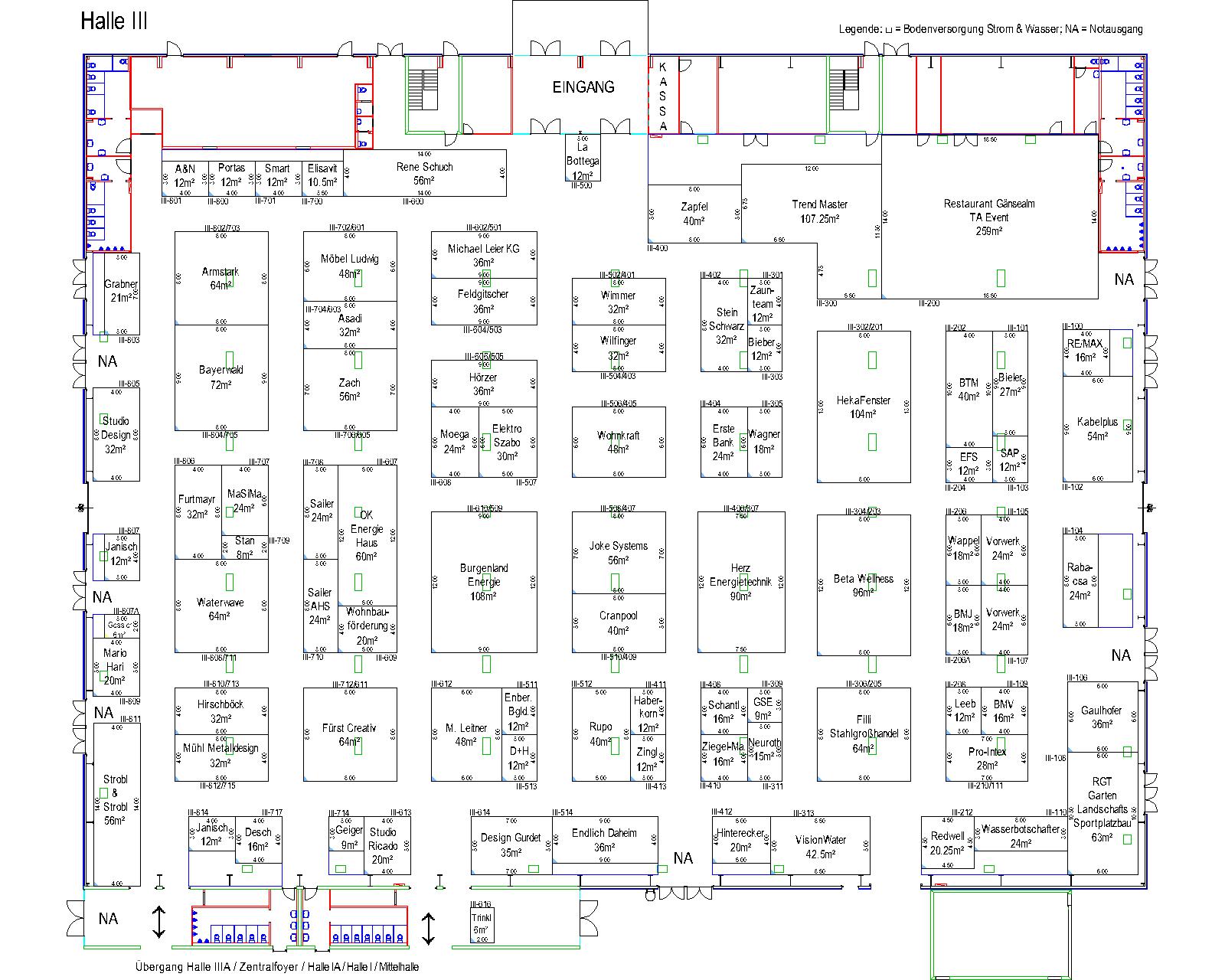 Hallenpläne und Gesamtübersicht