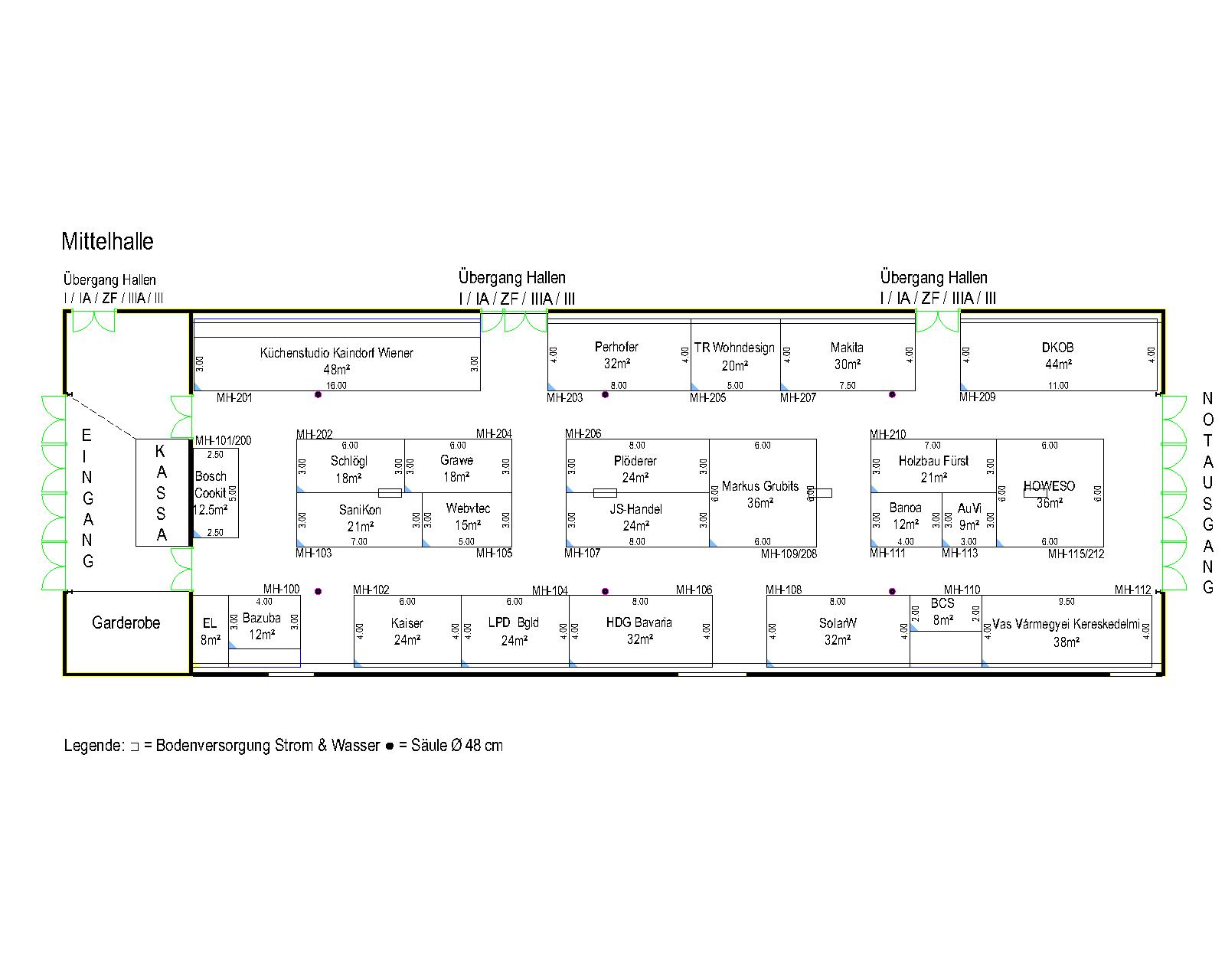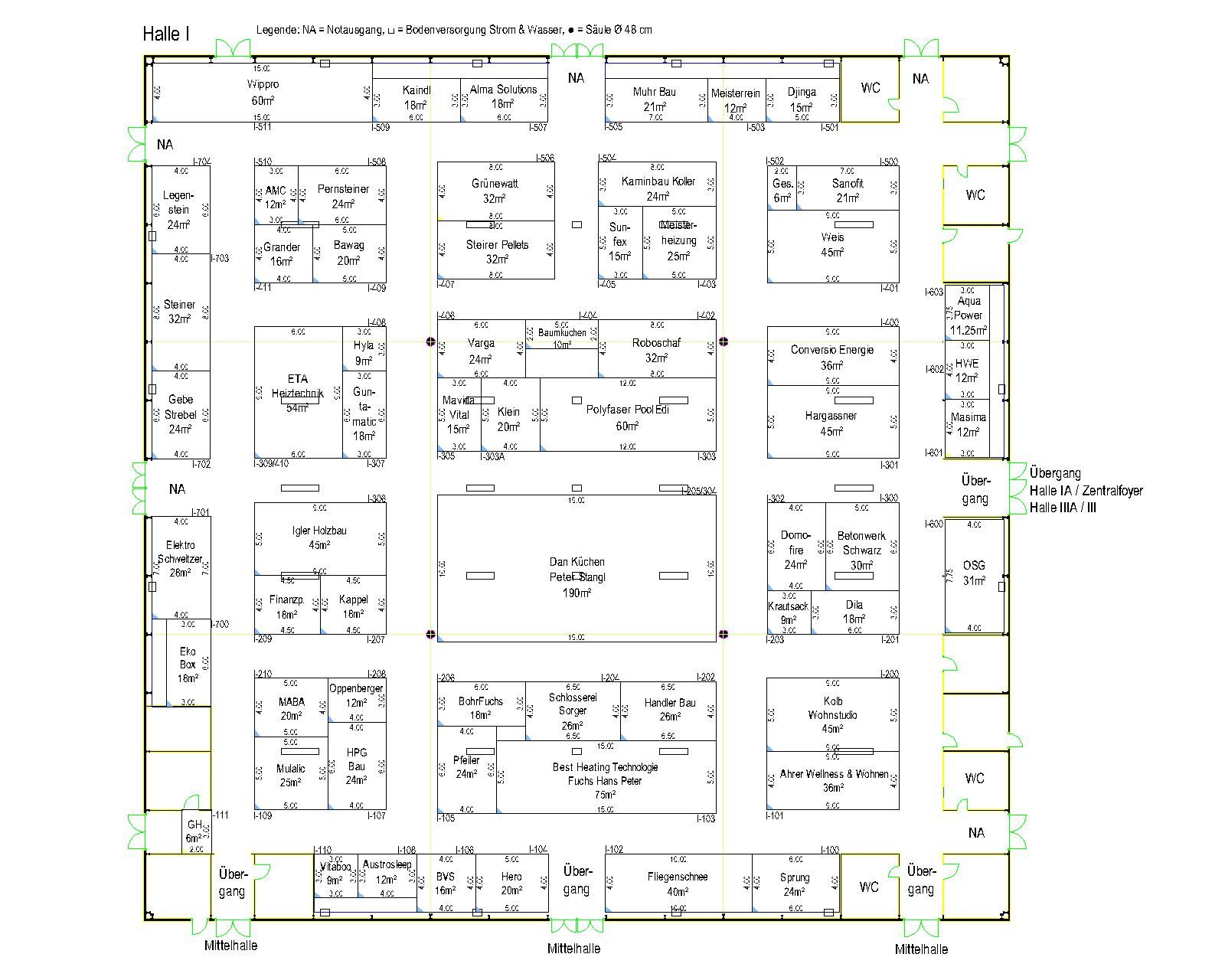 Hallenpläne und Gesamtübersicht